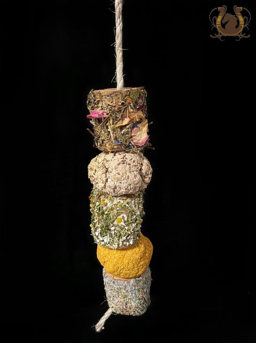 Mutterkraut , Kräuter , Kokosklötze Möhrenball und Leinsamenball! Eine lecker Abwechslung zum aufhängen in der Box ! Sollten sie eine andere Kombination benötigen schreiben sie uns an !