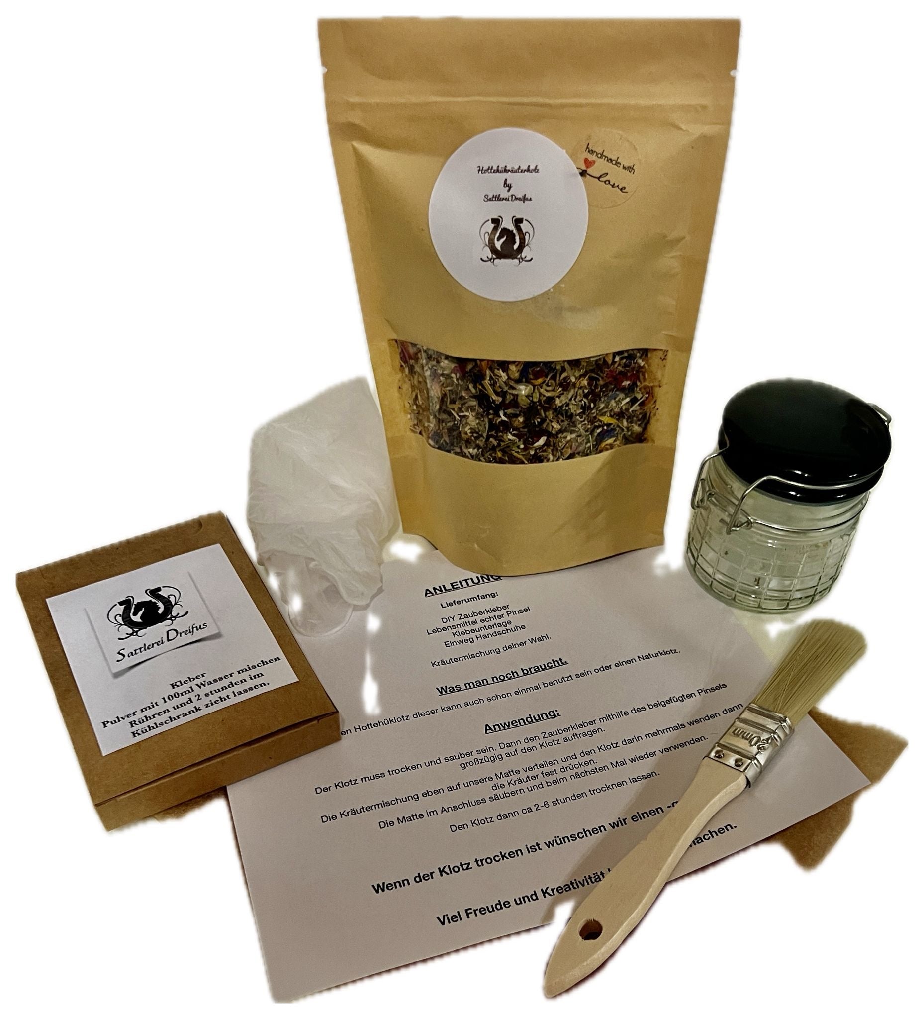 DIY Zauberkleber Lebensmittel echter Pinsel Klebeunterlage Einweg Handschuhe Kräutermischung deiner Wahl ( reicht für 2 mal)
