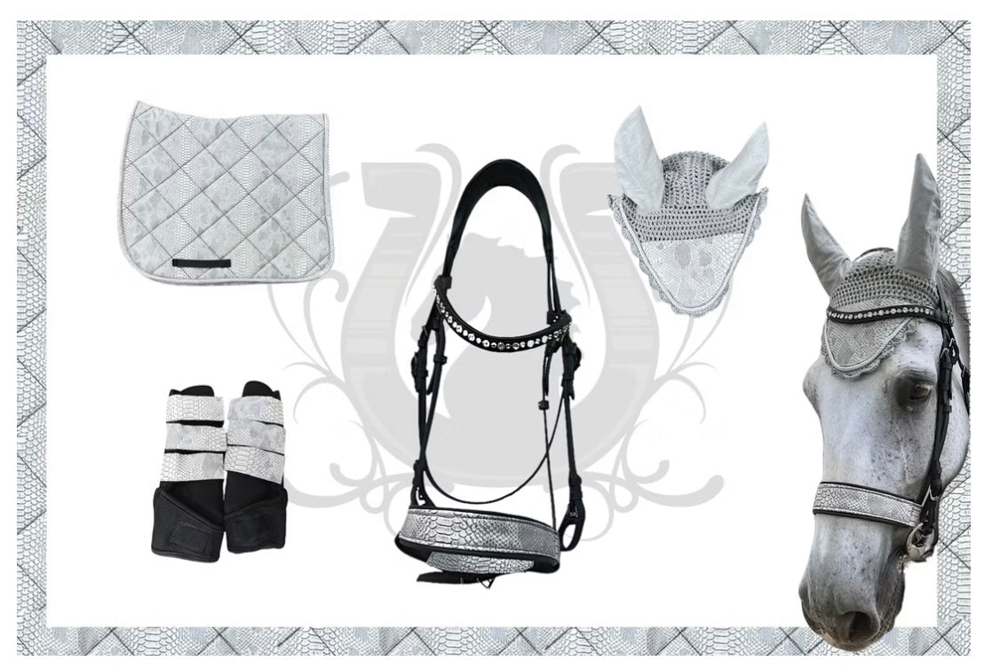 Das exklusive Set in Schlangenlederoptik ist wirklich ein tolles Must-Have für alle Reiter, die Luxus und Eleganz schätzen.