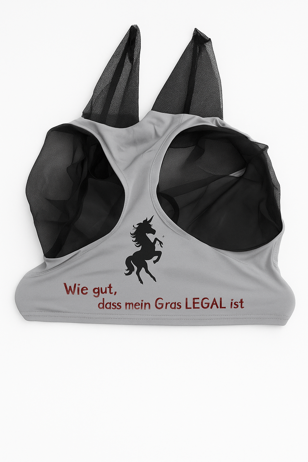 Fliegenhaube Pferd „ Wie gut, das mein Gras Legal ist .