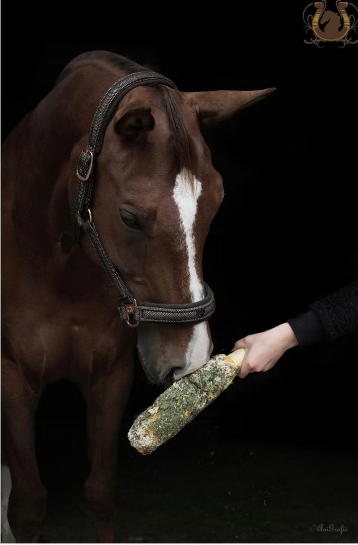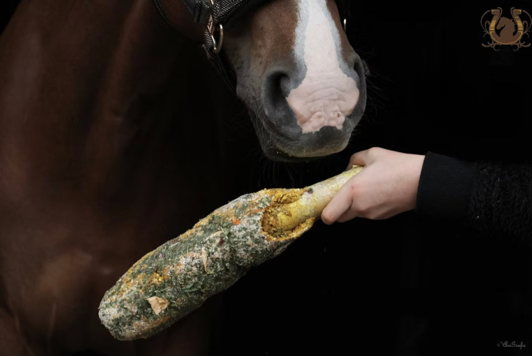 Das Knabberholz Bam Bam für Pferde ist eine schmackhafte Leckerei, die aus einer köstlichen Kombination von Haferflockenmöhrenmischung und einer gesunden Ummantelung aus Mariendistel, Minze, Salbei, Pfefferminze, Blüten, Hanf, Mutterkraut und Tausendgüldenkraut besteht. Diese hochwertigen Zutaten machen das Knabberholz zu einer idealen Belohnung oder Snack für Ihr Pferd. Mit seinem natürlichen Geschmack und den wertvollen Inhaltsstoffen wird Ihr Pferd das Knabberholz Bam Bam lieben. Gönnen Sie Ihrem geliebten Vierbeiner dieses schmackhafte und gesunde Leckerli und bereiten Sie ihm eine Freude!
