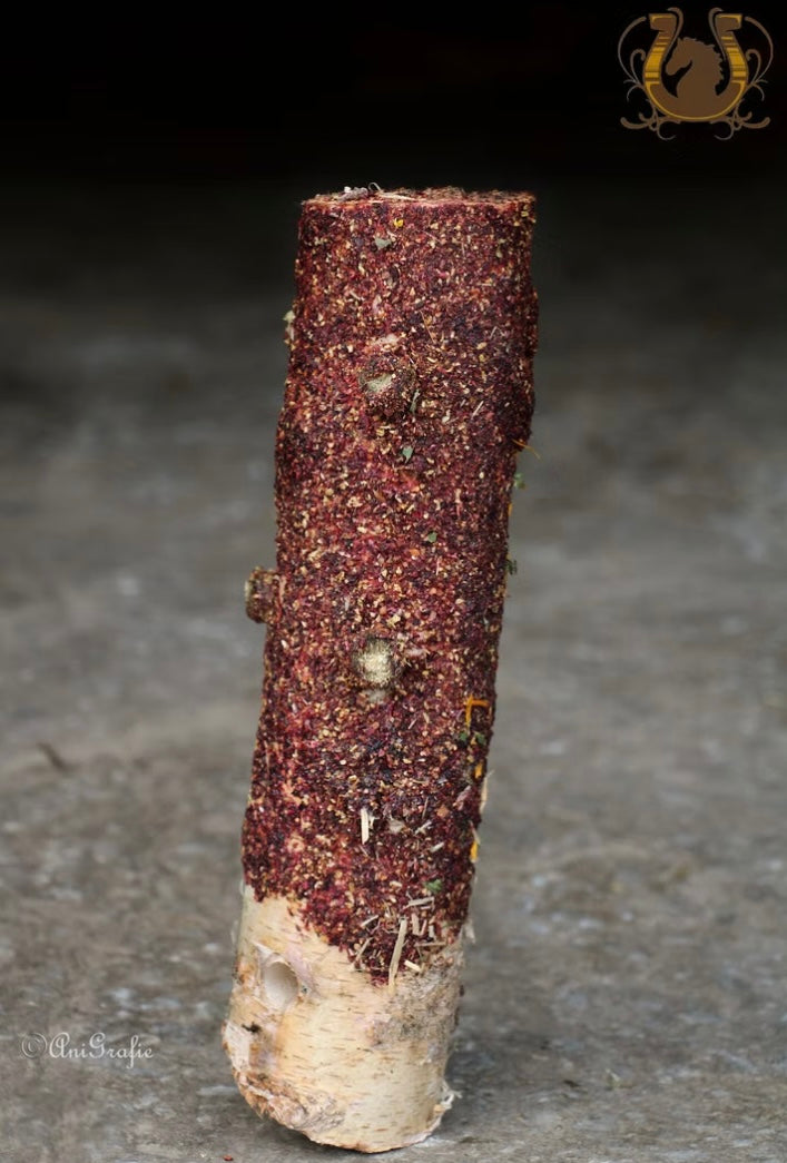 All unsere Klötze sind rund um mit Leckereien bestückt und haben ein Loch zum aufhängen.