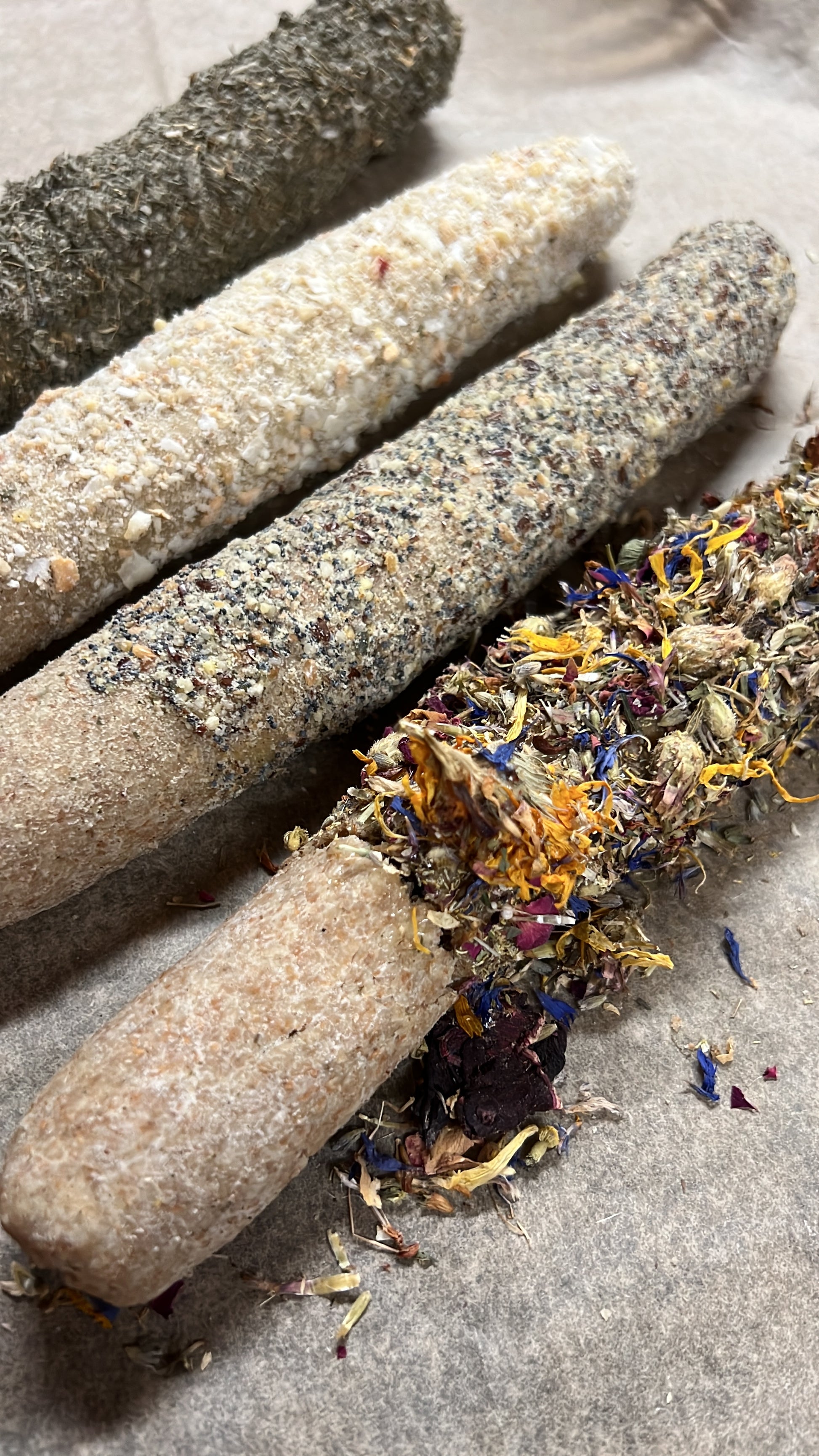 Die Knabbersticks sind ca. 23x3 cm groß und werden in Sets von 4 oder 8 Stück angeboten, je nach Bedarf. Jeder Stick wird sorgfältig von Hand in unserer Manufaktur hergestellt, um höchste Qualität und Frische zu gewährleisten. Dank ihrer handlichen Größe sind die Sticks ideal für unterwegs oder als Trainingsbelohnung geeignet.