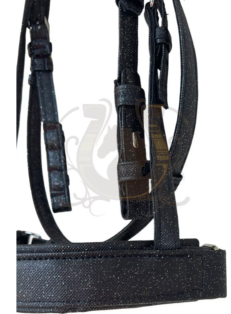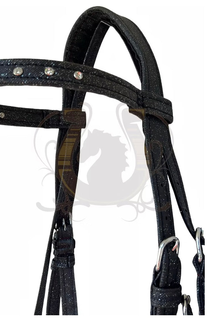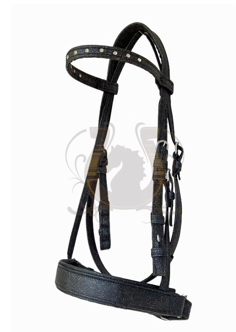 Die Kunstledertrense Galaxy für Pferde ist wirklich ein wunderschönes Accessoire für jeden Reiter. Sie besteht aus hochwertigem Kunstleder, das schön glitzert und alle Blicke auf sich zieht. Der Stirnriemen ist mit funkelnden Strasssteinen verziert, was der Trense eine elegante und edle Optik verleiht.