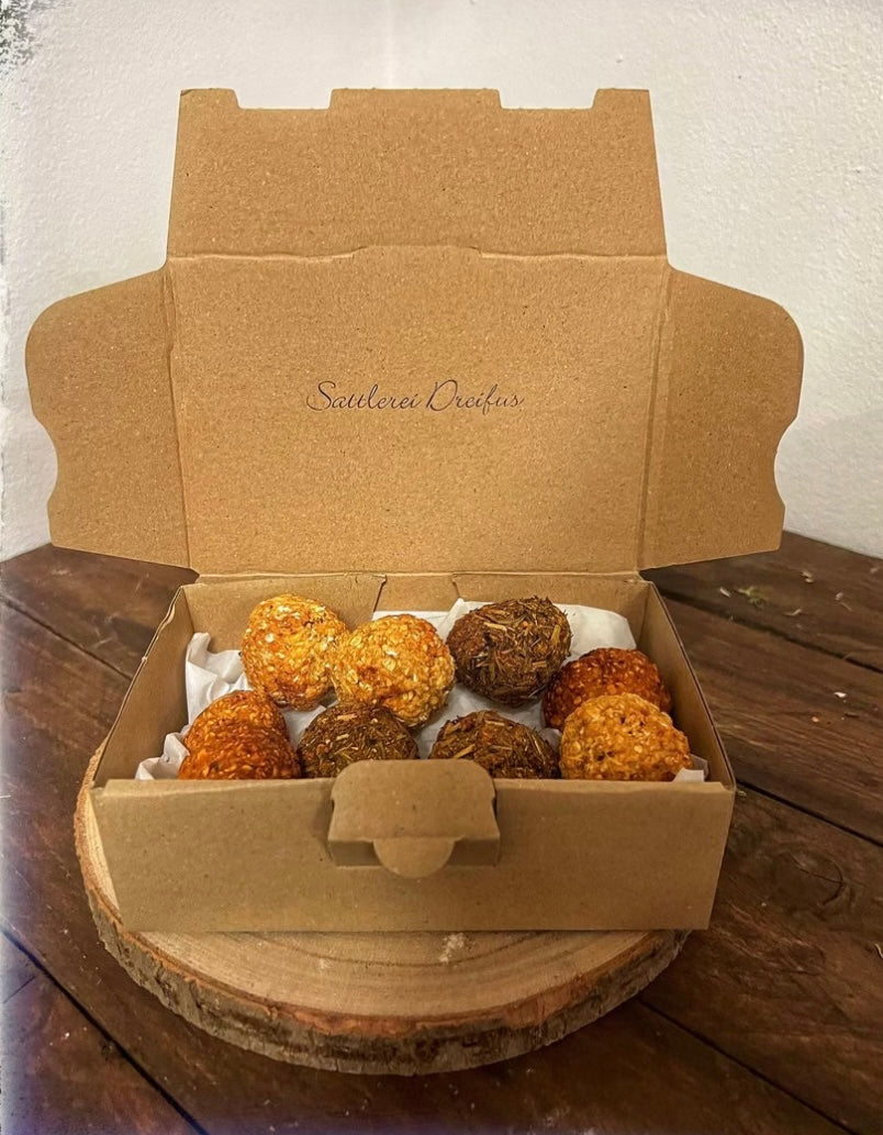 Handwerklich liebevoll gefertigt, überzeugen die Pferdepralinen durch ihren natürlichen Duft, Geschmack und die ansprechende Verpackung – ideal als Geschenk zu Geburtstagen, Siegerehrungen oder einfach als Dankeschön.