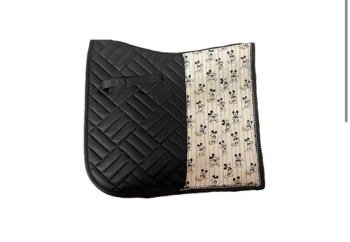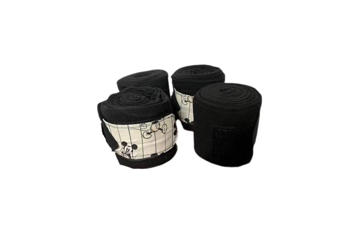 Unser Schabracken-Set ist ein echter Hingucker für alle Reiterinnen und Reiter da draußen! Das Set besteht aus einer edlen Schabracke in Schwarz, verziert mit funkelndem Strass und dem süßen Motiv der Maus, den dazu passenden Bandagen, Bandagierunterlagen und Hufglocken.